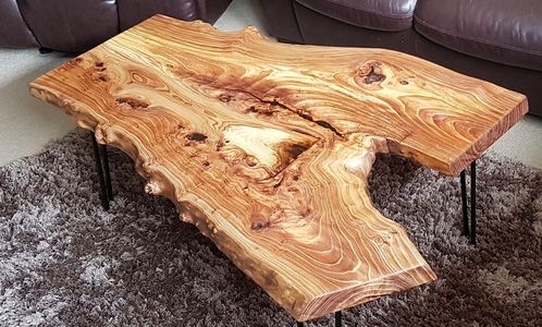 Beautiful and very unique Siberian Elm river coffee table with 40 liters of